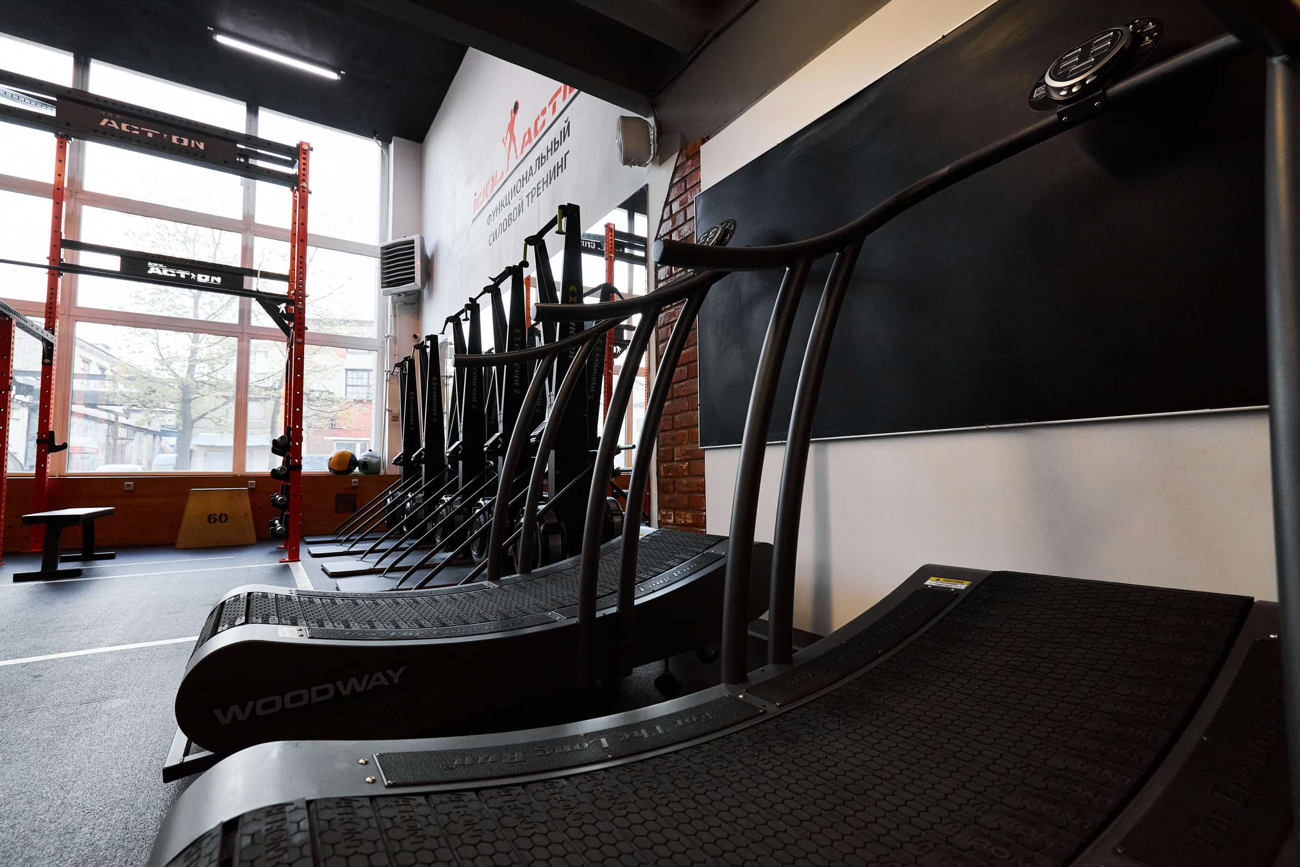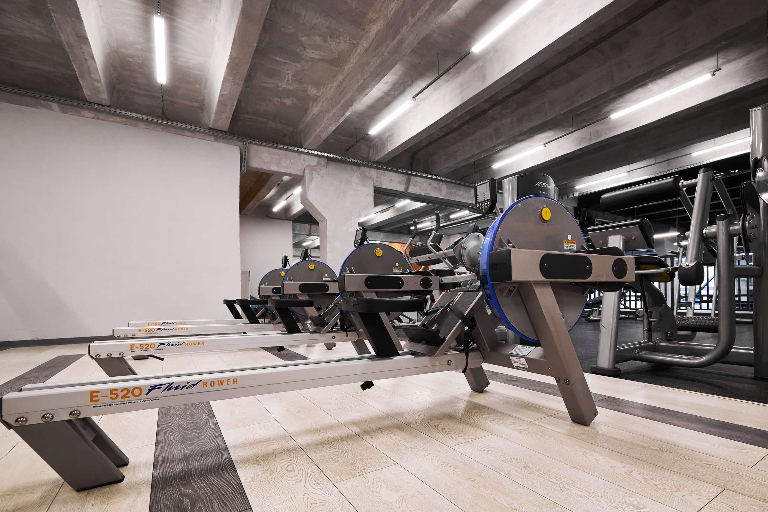 • Рамы с турниками на 13 мест, гребные и лыжные тренажеры Concept2, дорожки Technogym Skillmill, велотренажеры Assault AirBike