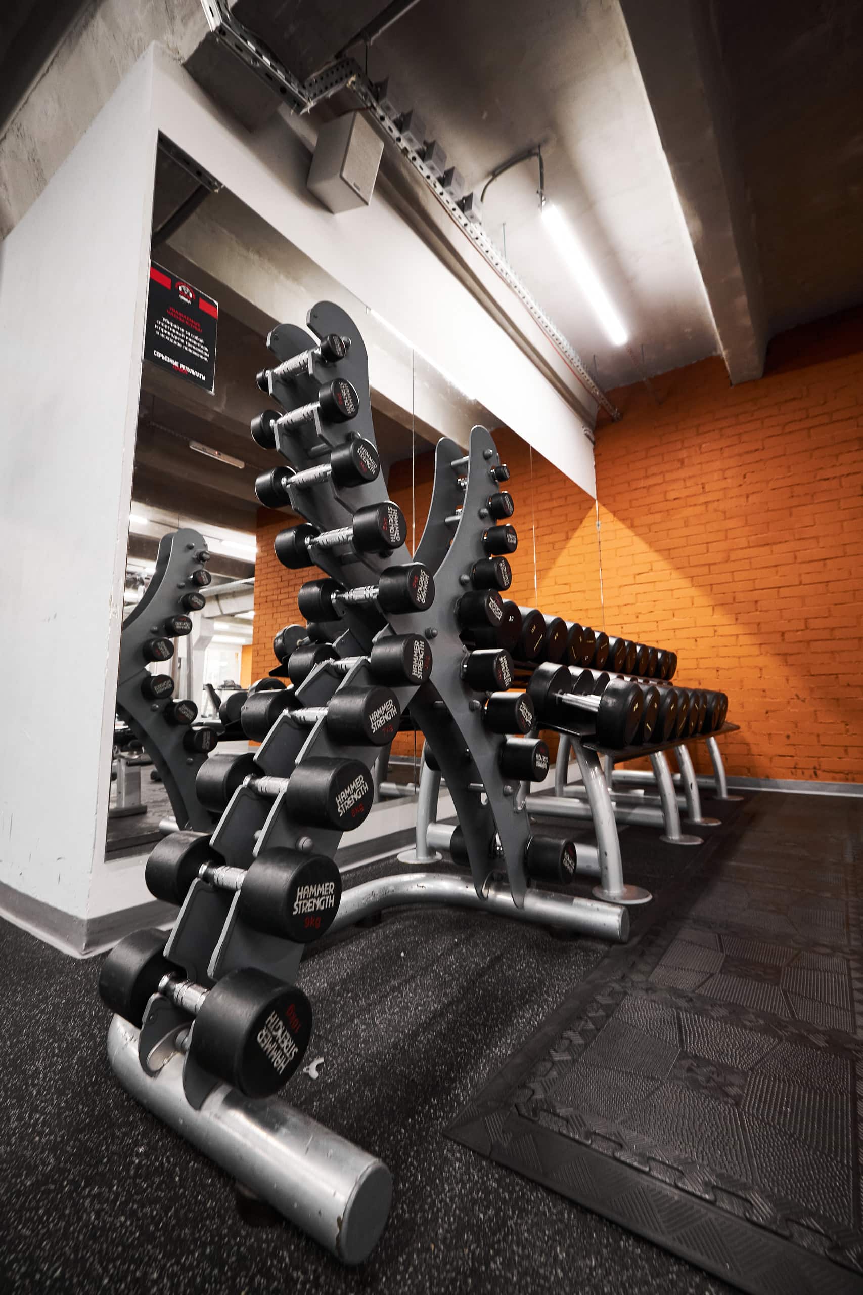 - Премиальные тренажеры Hammer Strength и Life Fitness для умных и результативных тренировок.
